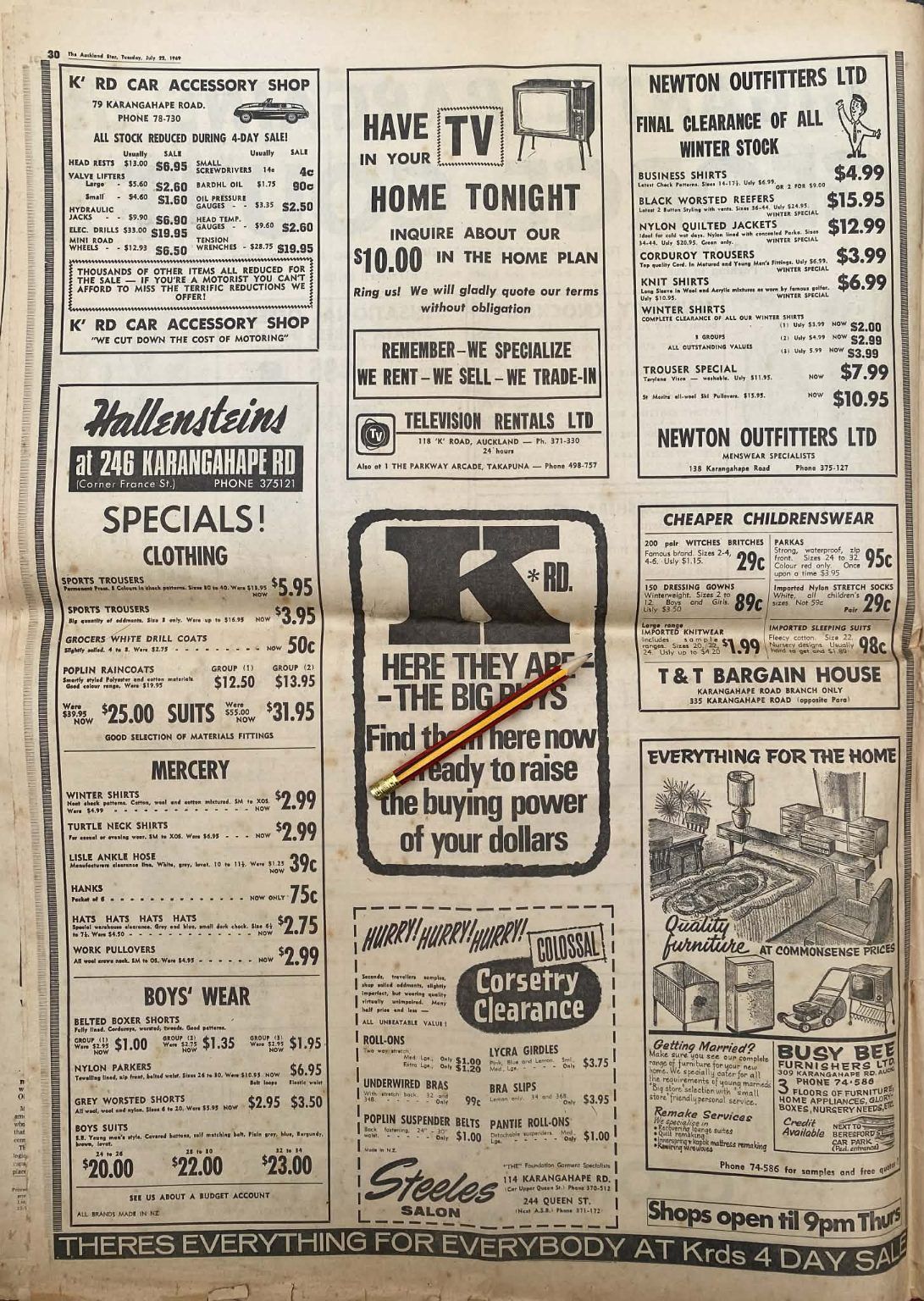 Own a unique piece of Kiwiana - an original full page vintage advert for Karangahape Road shopping from a 1969 newspaper that would look fantastic framed.