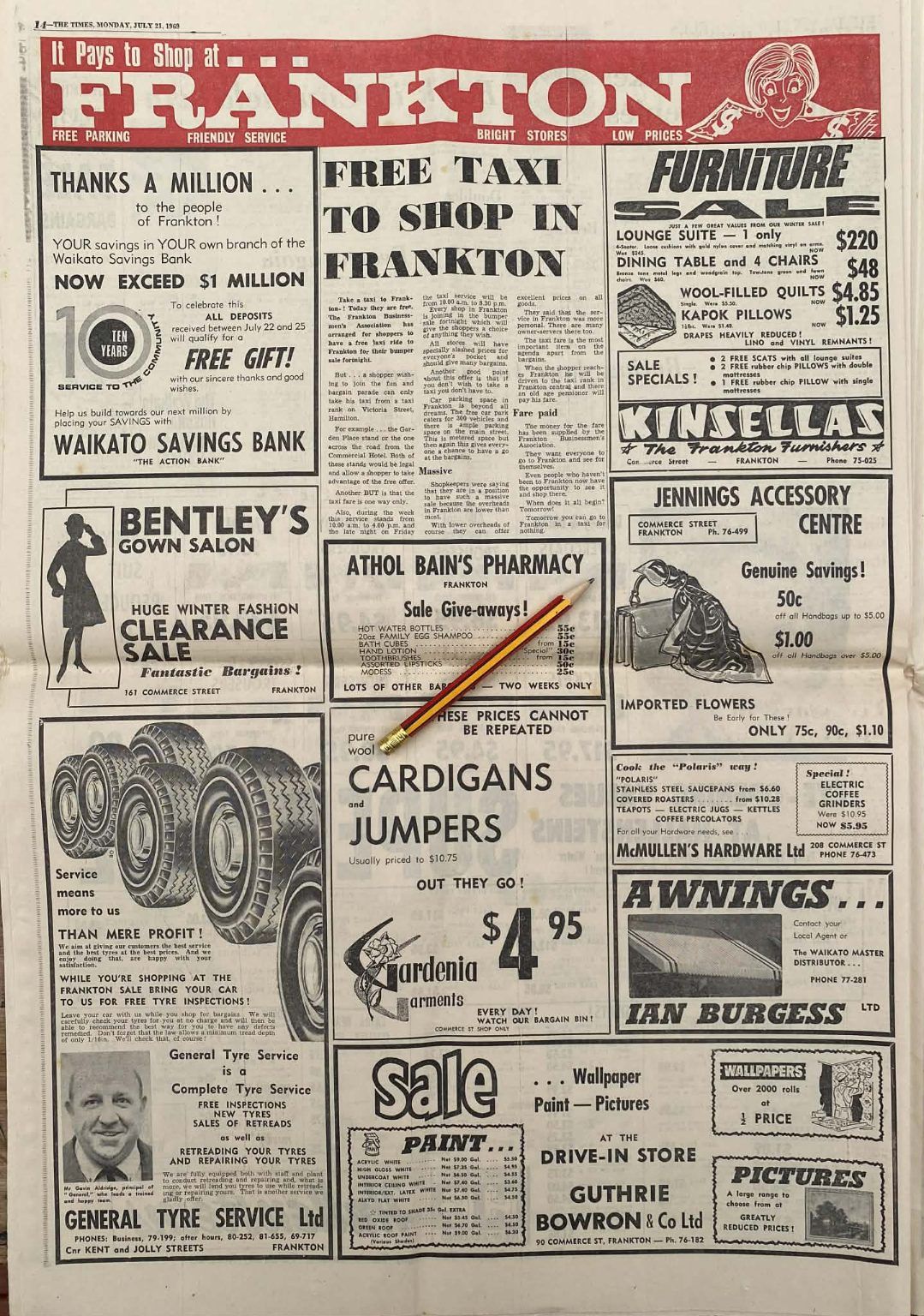 VINTAGE NEWSPAPER ADVERT: Frankton Shopping 1969