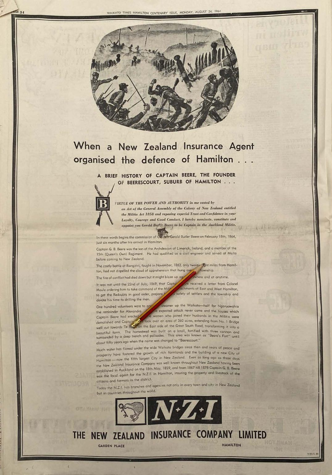VINTAGE NEWSPAPER ADVERT: NZI New Zealand Insurance Company 1964