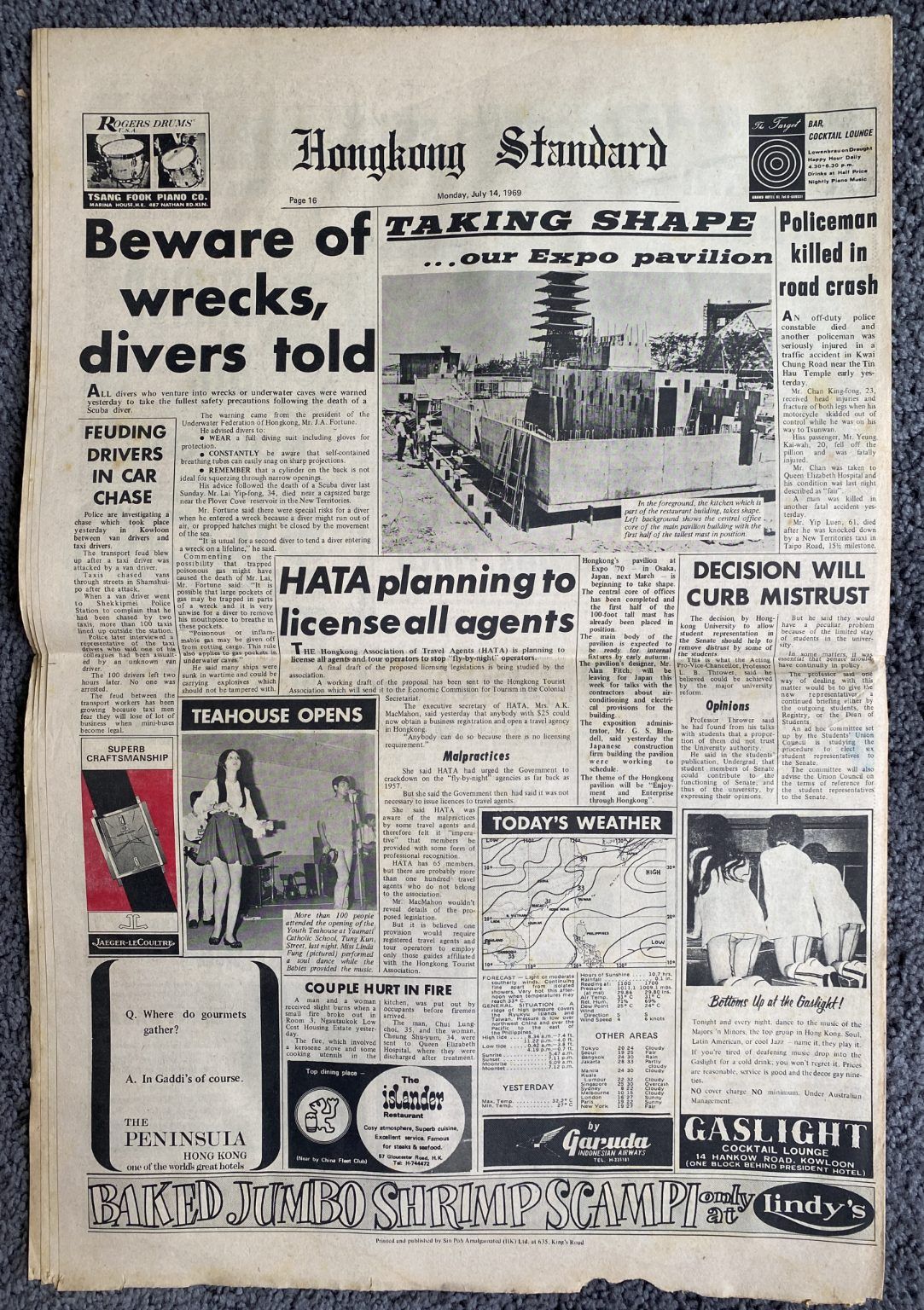 OLD NEWSPAPER: Hong Kong Standard - Monday, 14 July 1969