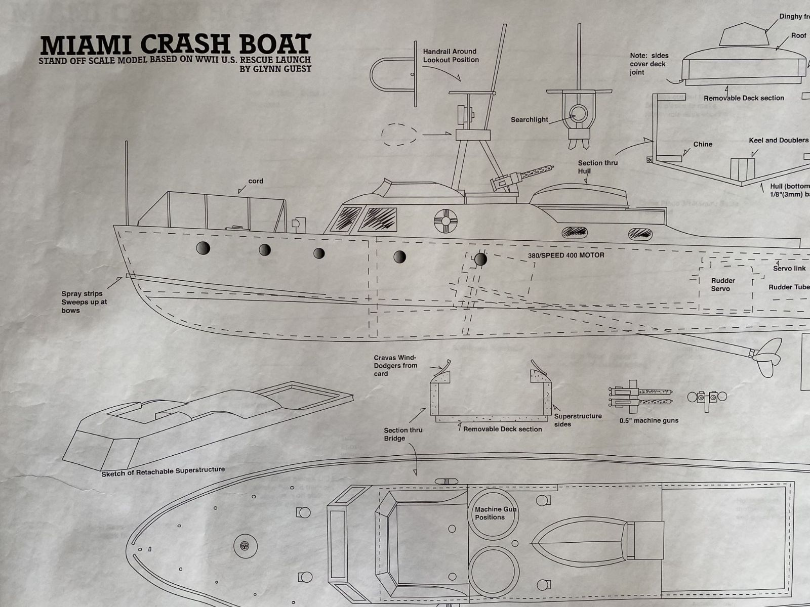 Plans to build a 1/32" scale model of a Miami Crash Boat based on a WW2 rescue launch.