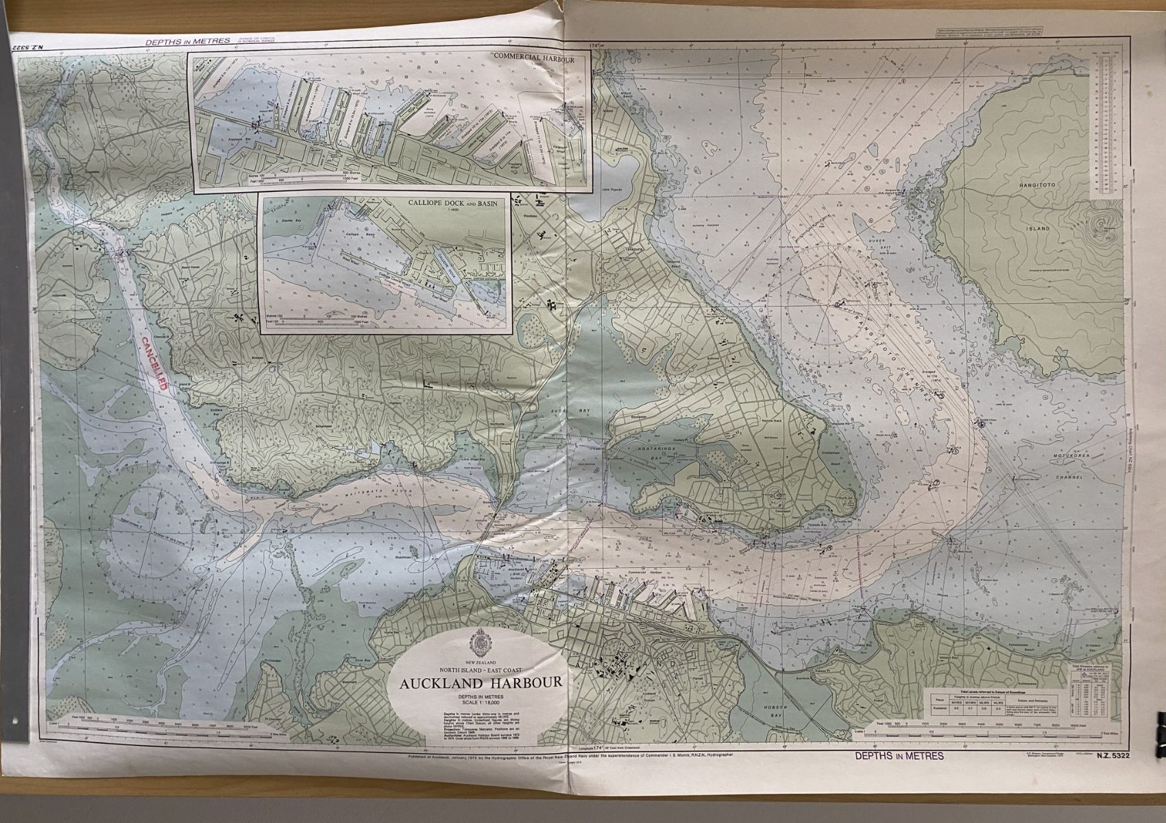 VINTAGE NAUTICAL CHART: Auckland Harbour NZ5322 1975
