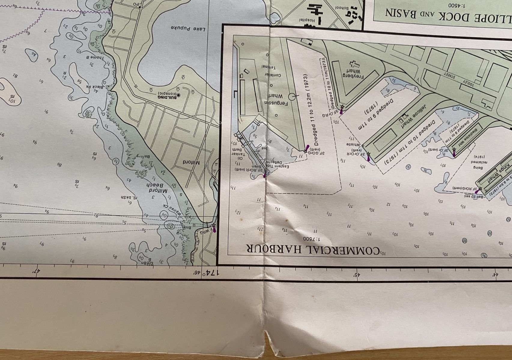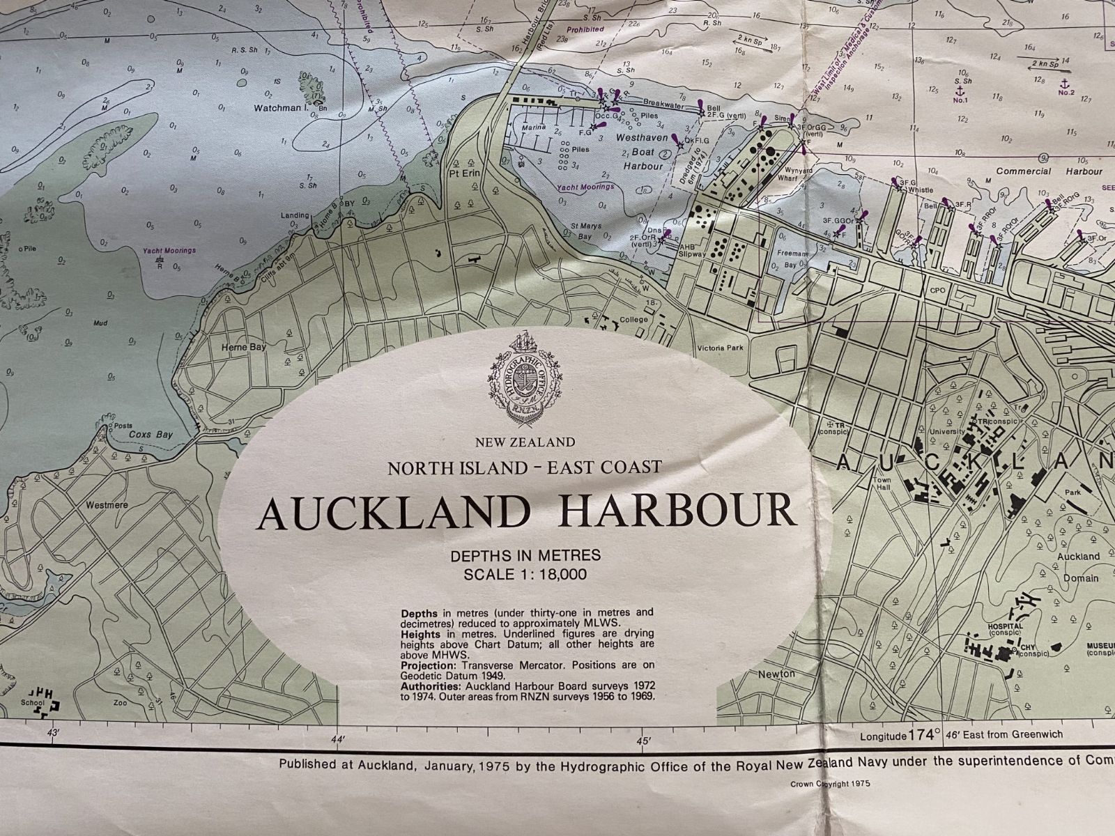 Vintage Admiralty Chart of Auckland Harbour NZ5322, from 51+ years ago.