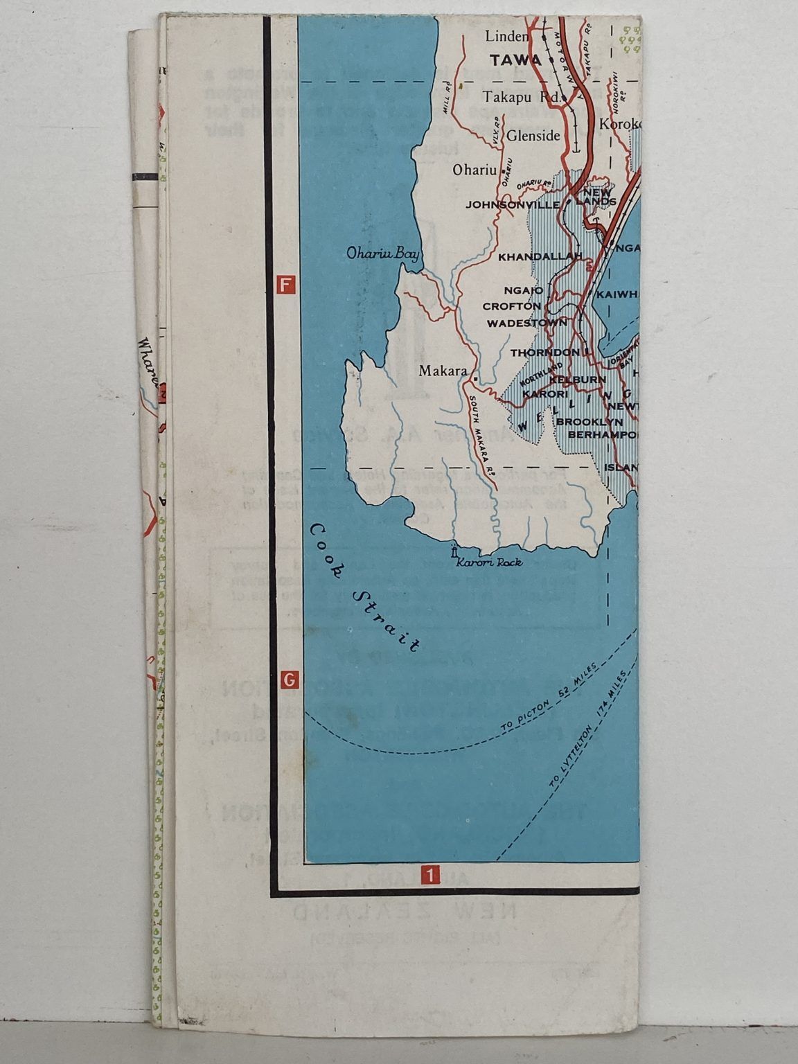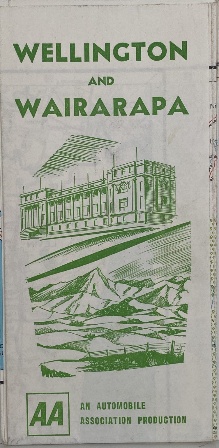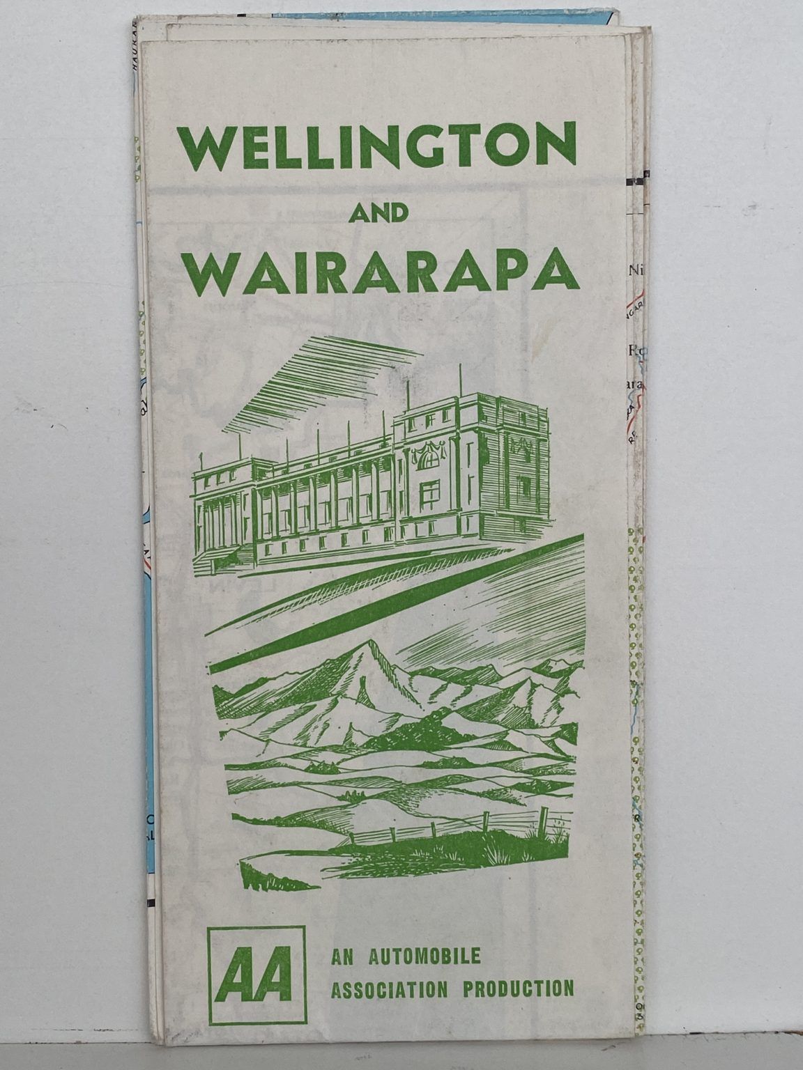 Vintage map of the Wellington and Wairarapa region in the North Island of New Zealand, published by the Automobile Association.