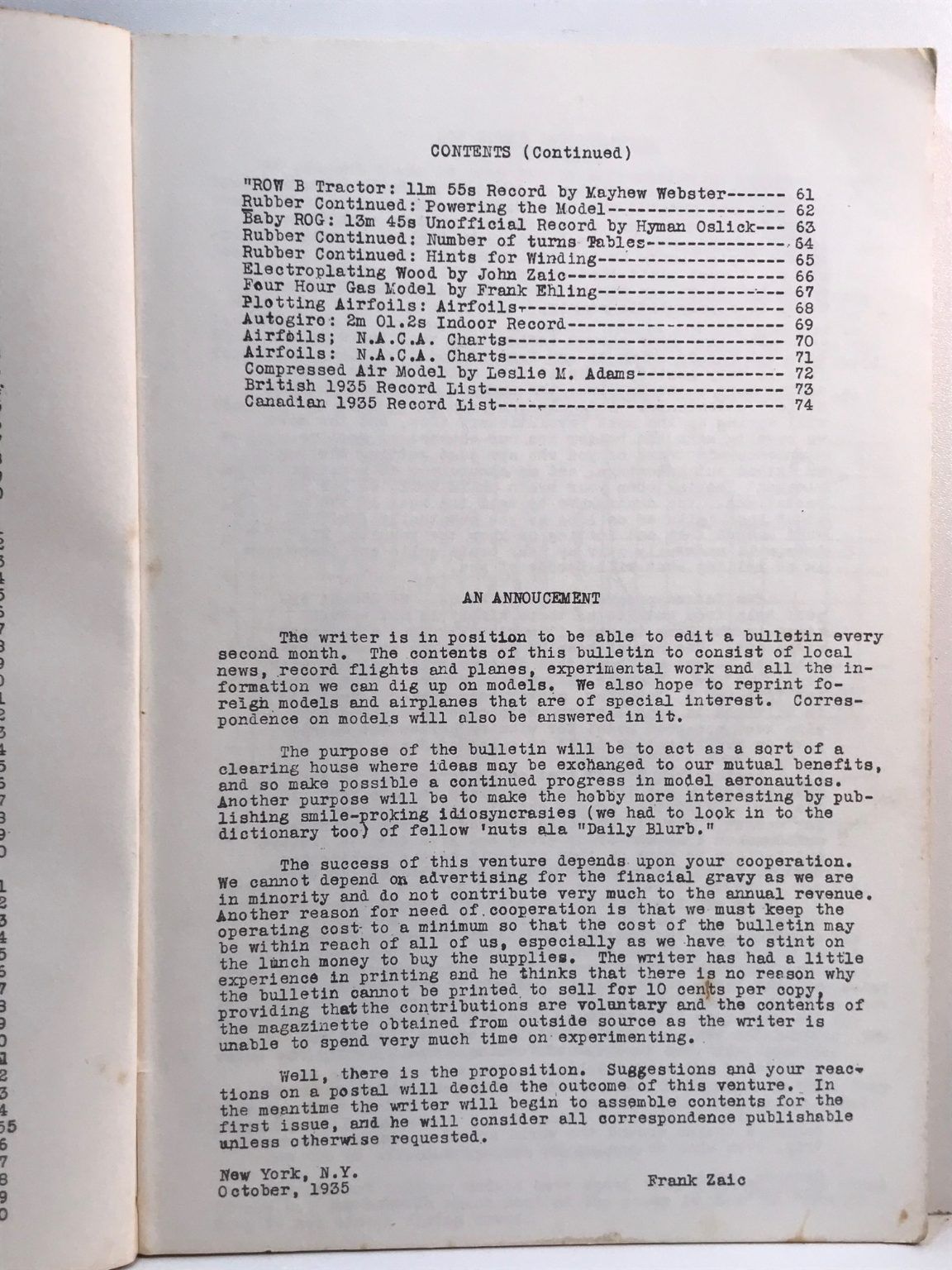 Zaic compiles contest results, model designs, performance data, and construction methods from across the United States, creating a detailed snapshot of what builders and flyers were achieving in the mid 1930s.