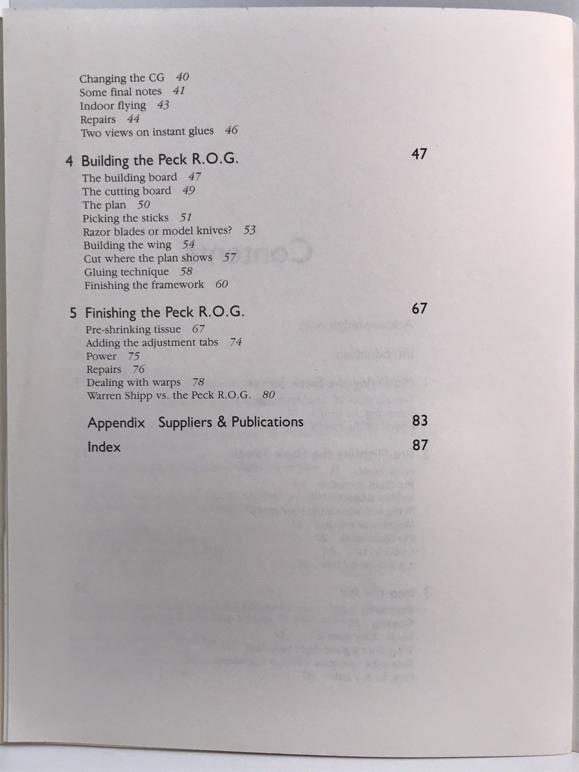 Offers an introduction to free-flight model building, and shows how to modify the Sleek Streak and Peck R.O.G. models.