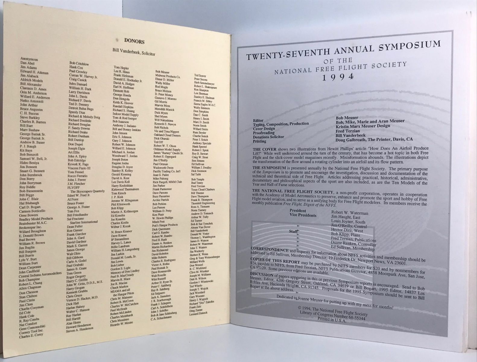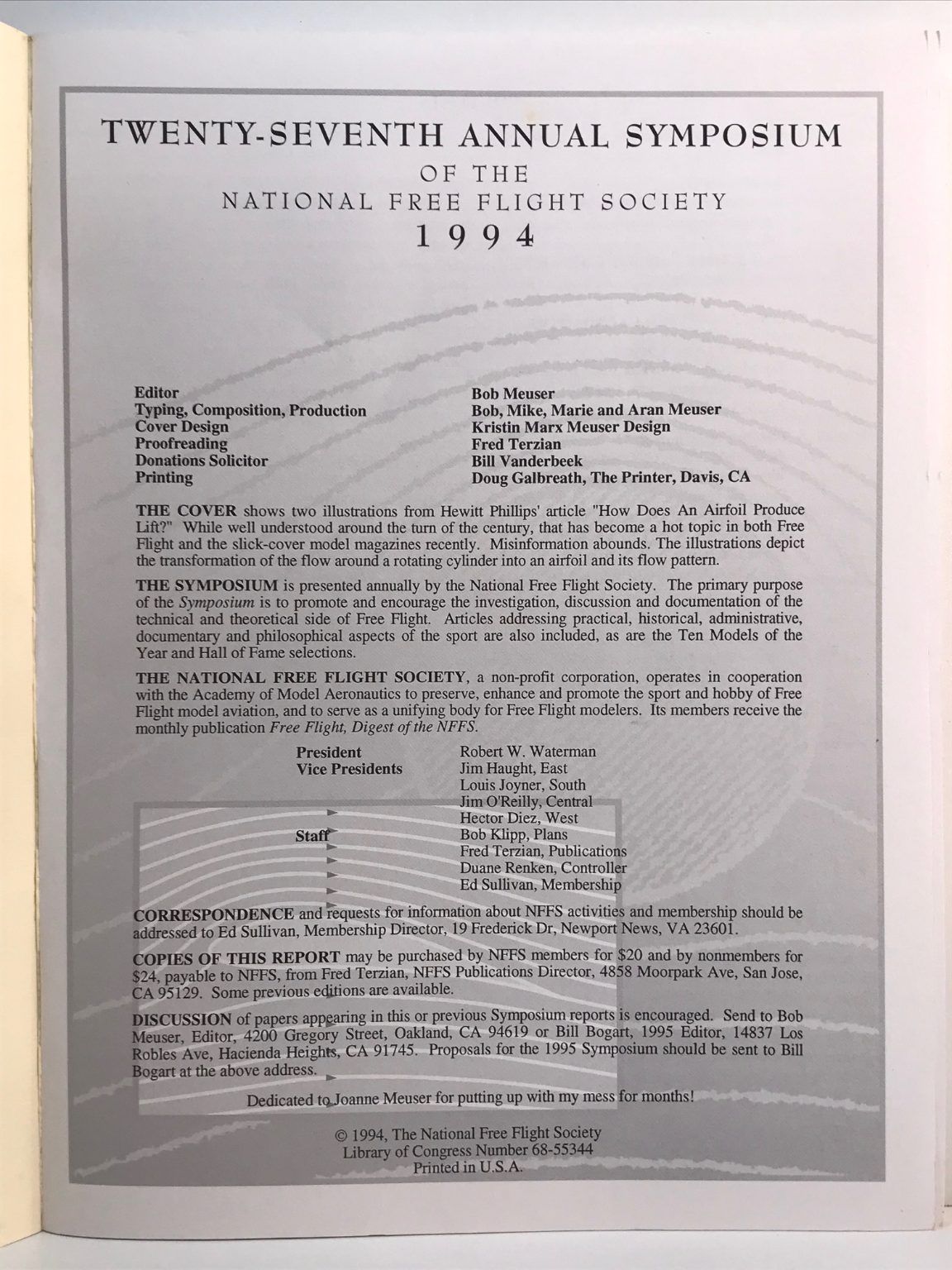 TWENTY-SEVENTH ANNUAL SYMPOSIUM: Of the National Free Flight Society 1994