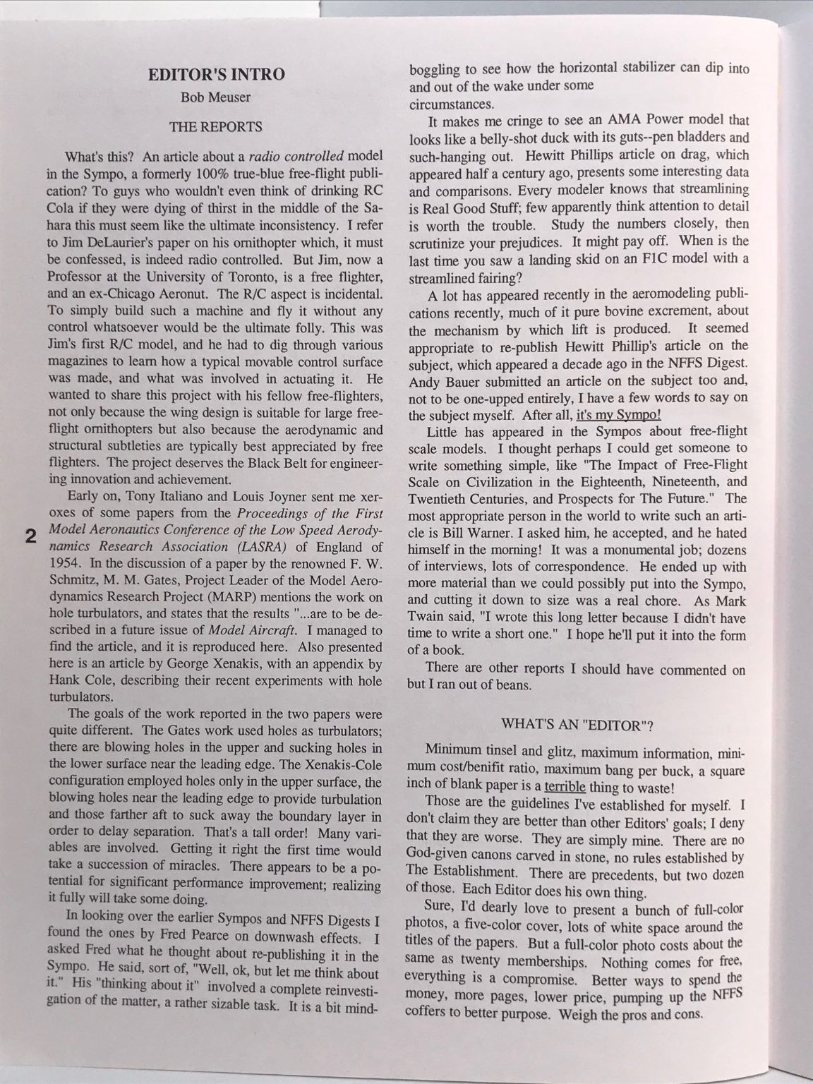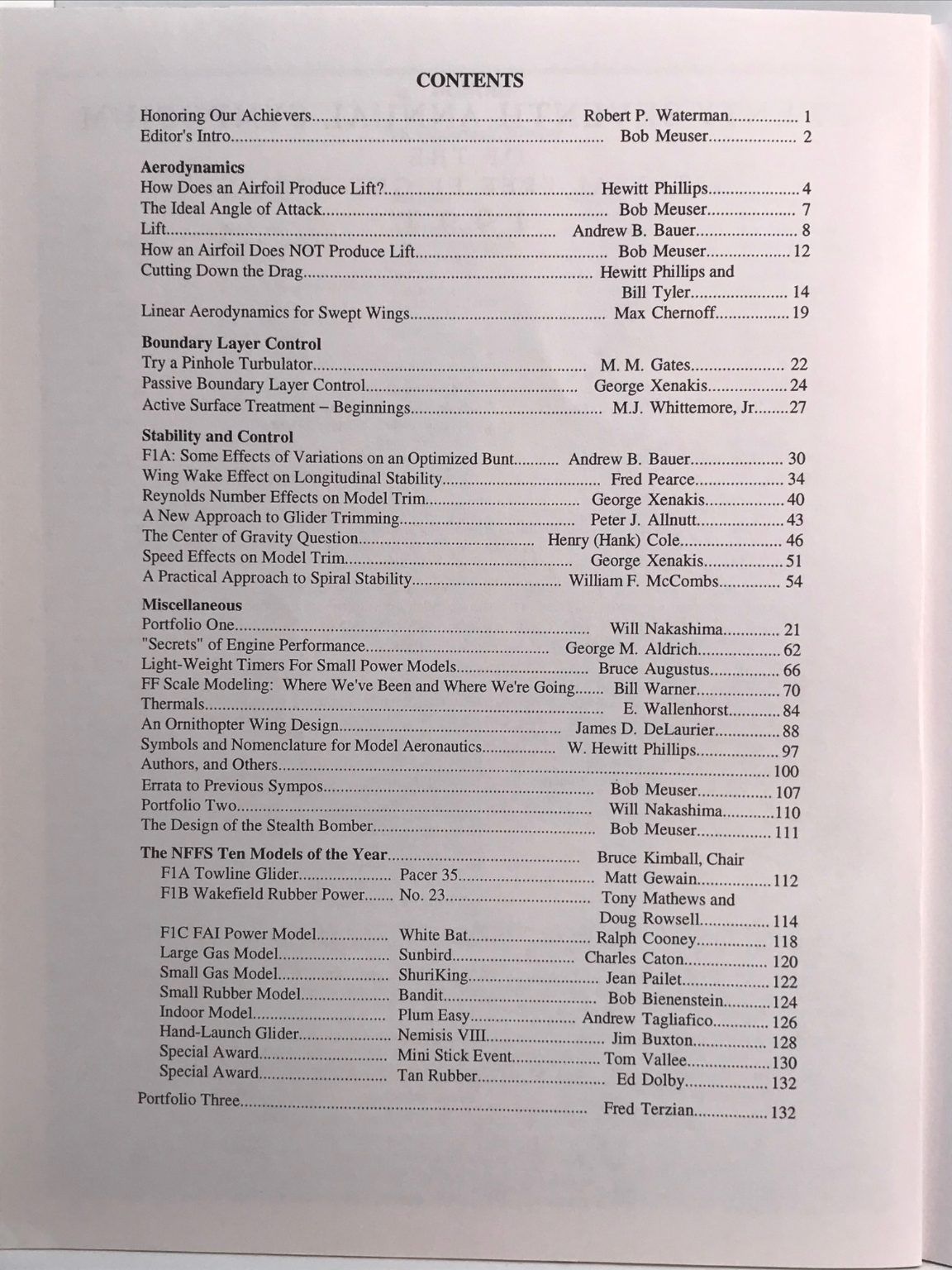 The 1994 symposium reflects a period of active experimentation in free flight, with contributors exploring aerodynamic theory, structural innovations, materials advances, and performance analysis across power, rubber, and glider classes.