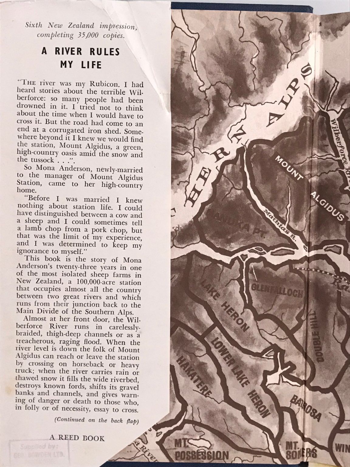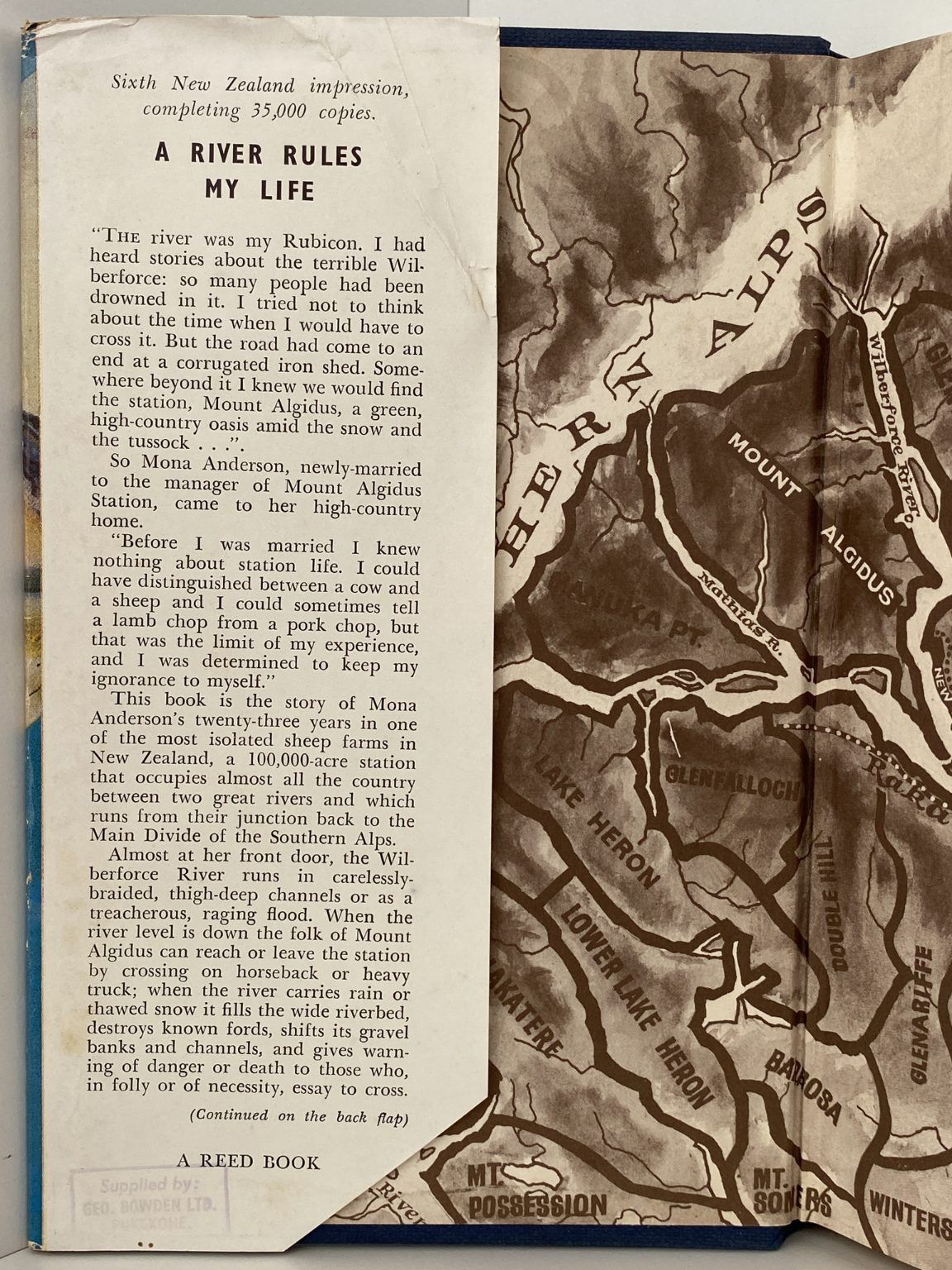 Mona Anderson and her popular books made the high country life famous and accessible to many. This 1963 book traces her life and the history of Mount Algidus Station way up the Wilberforce and Rakaia rivers in the 1930’s.