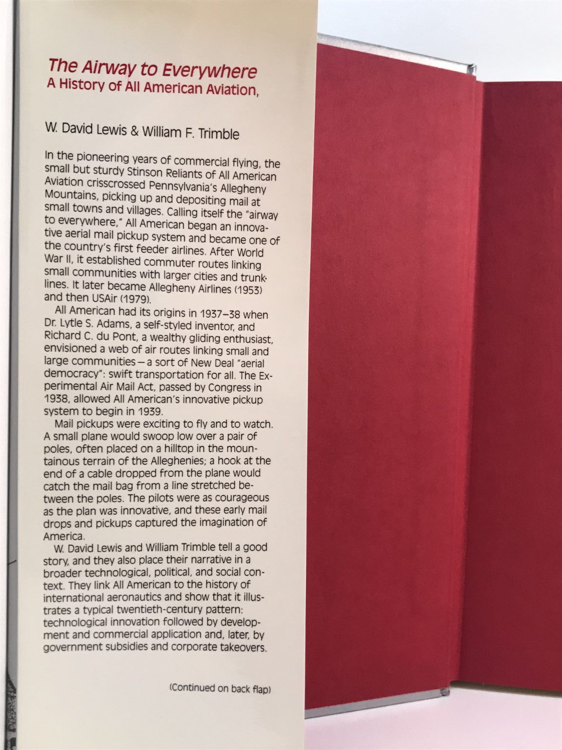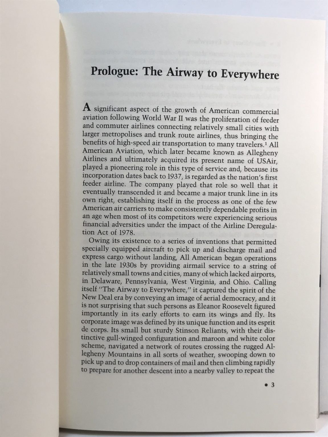 The story of this airline is placed within the context a typical twentieth-century American business pattern-where technological innovation is followed by development and commercial application, followed by government subsidies and corporate takeovers. In that vein, All American Aviation would become Allegheny Airlines, and later, U.S. Air.