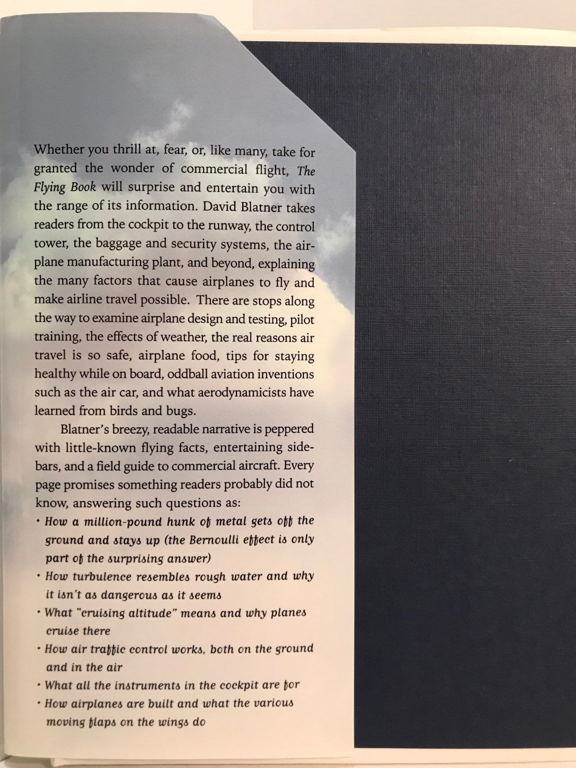 Whether you fear, thrill at, or, like many, have never bothered to stop and think about the wonder of commercial flight, The Flying Book will inform, surprise, reassure, and entertain.