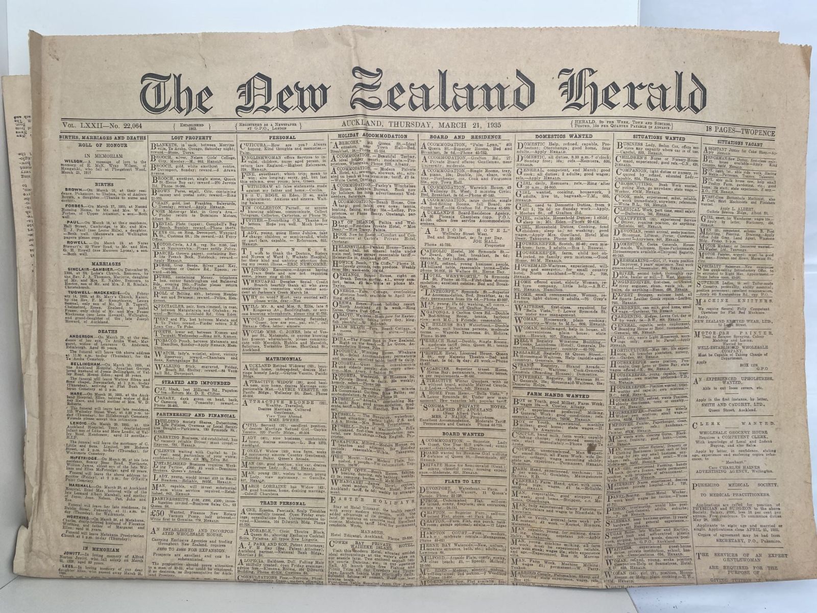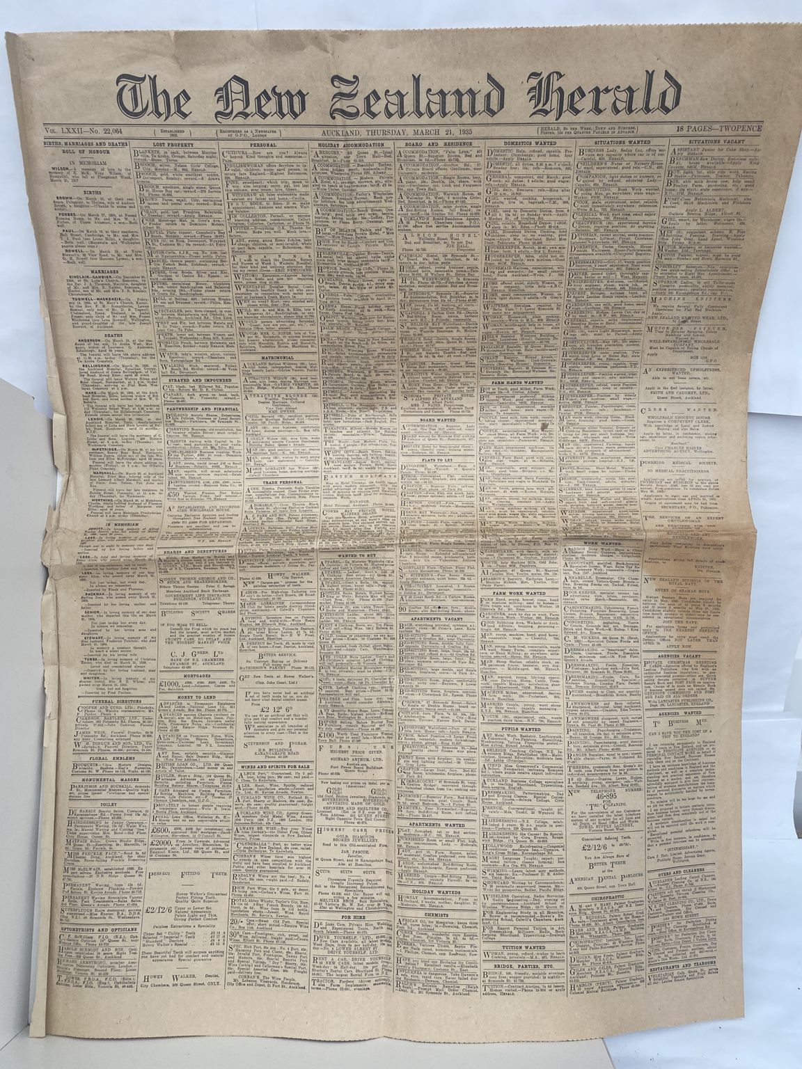 Title: OLD NEWSPAPER: The New Zealand Herald, 21 March 1935