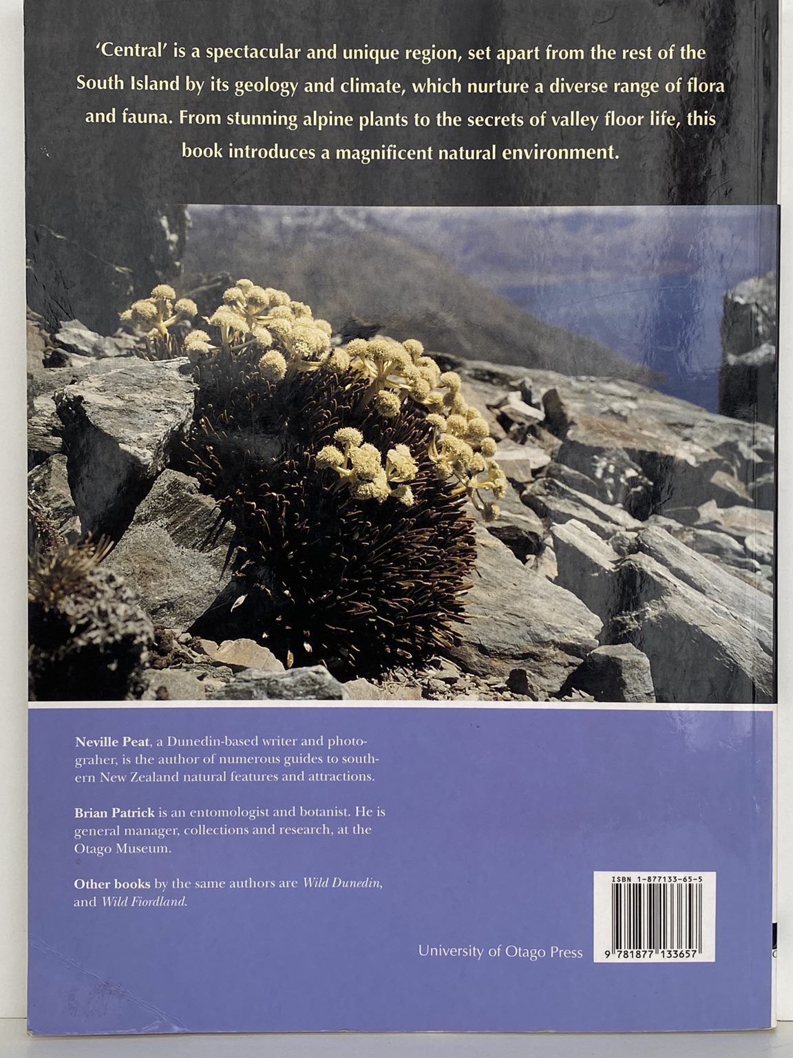 They describe a region set apart from the rest of the country by its geology and climate, which nurture a diverse range of flora and fauna. The book covers a rather larger area than what most people define as 'Central'. The authors have followed the schist boundary in defining Central, taking in the lakes region and even bits of Northern Southland.