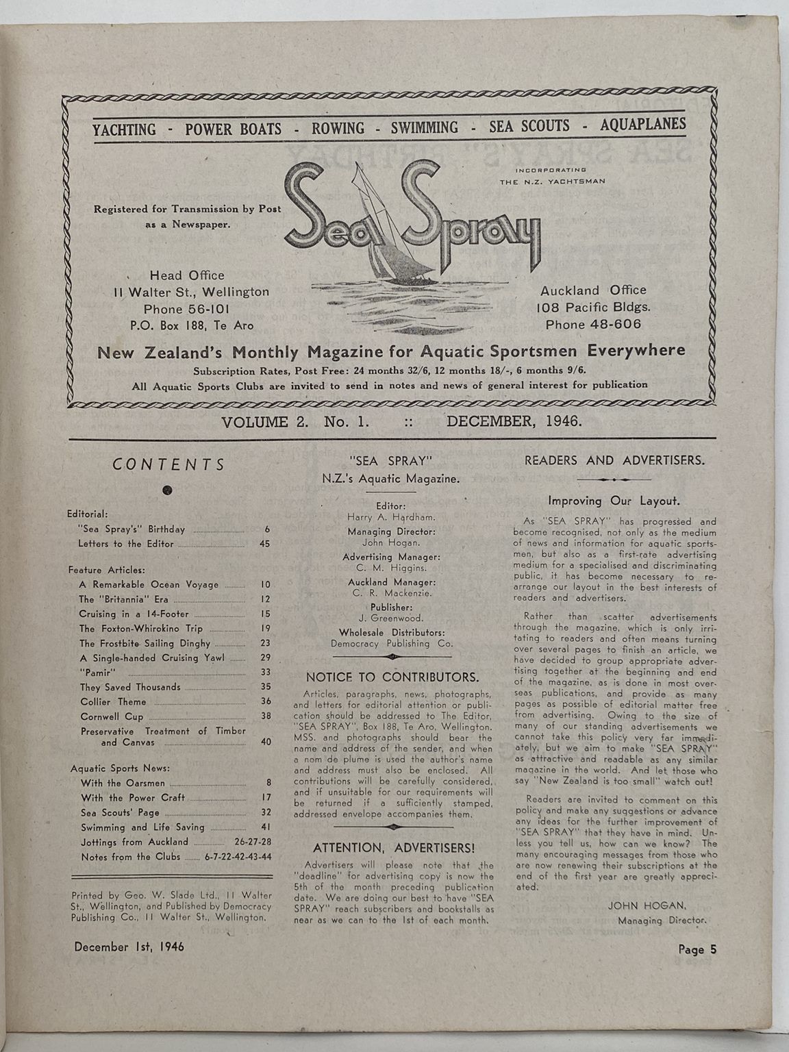 VINTAGE MAGAZINE: Sea Spray - Vol. 2, No. 1 - December 1946