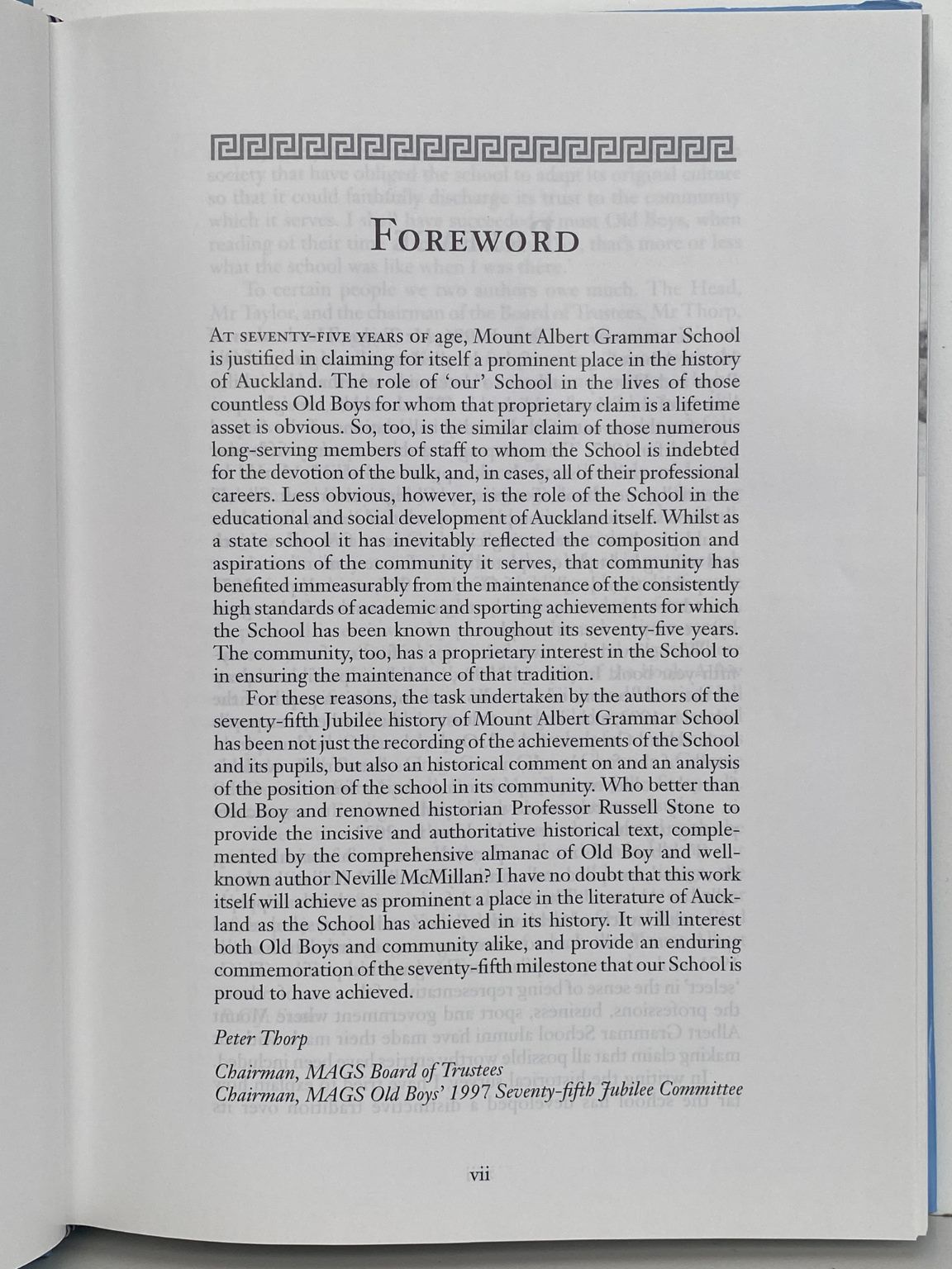 Commemorates seventy-five years of Mount Albert Grammar School history.