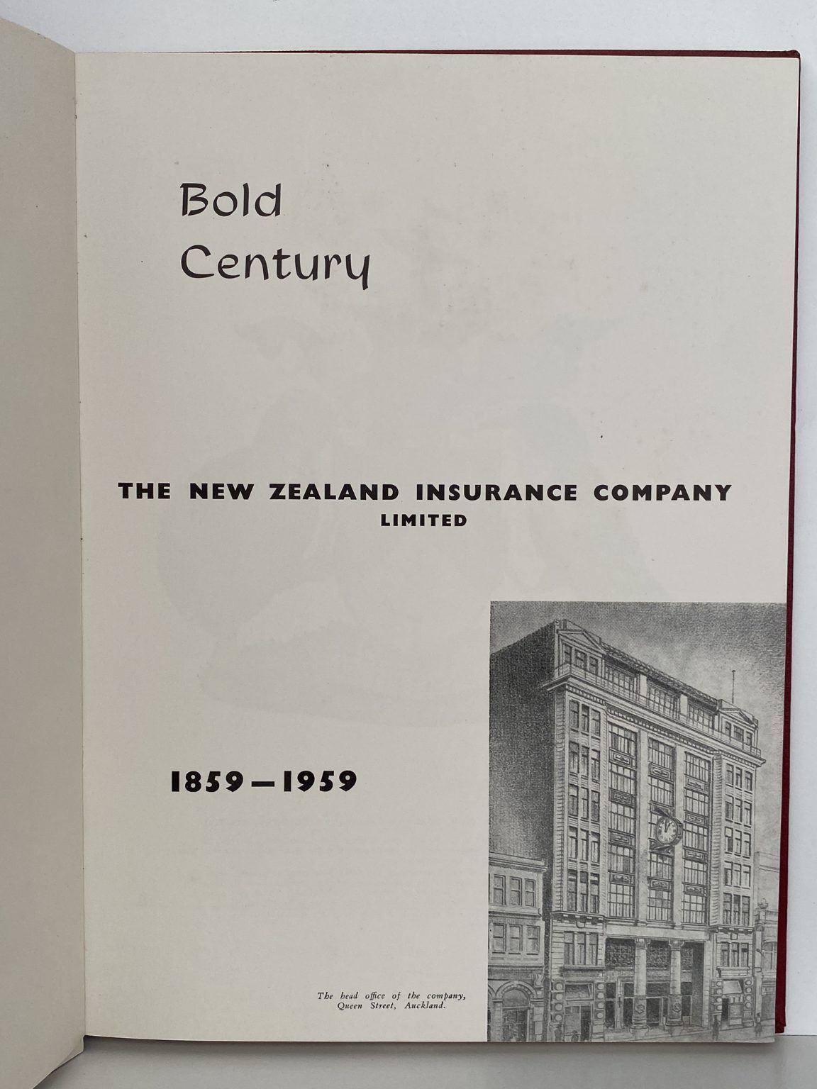 BOLD CENTURY 1859 - 1959: New Zealand Insurance Company