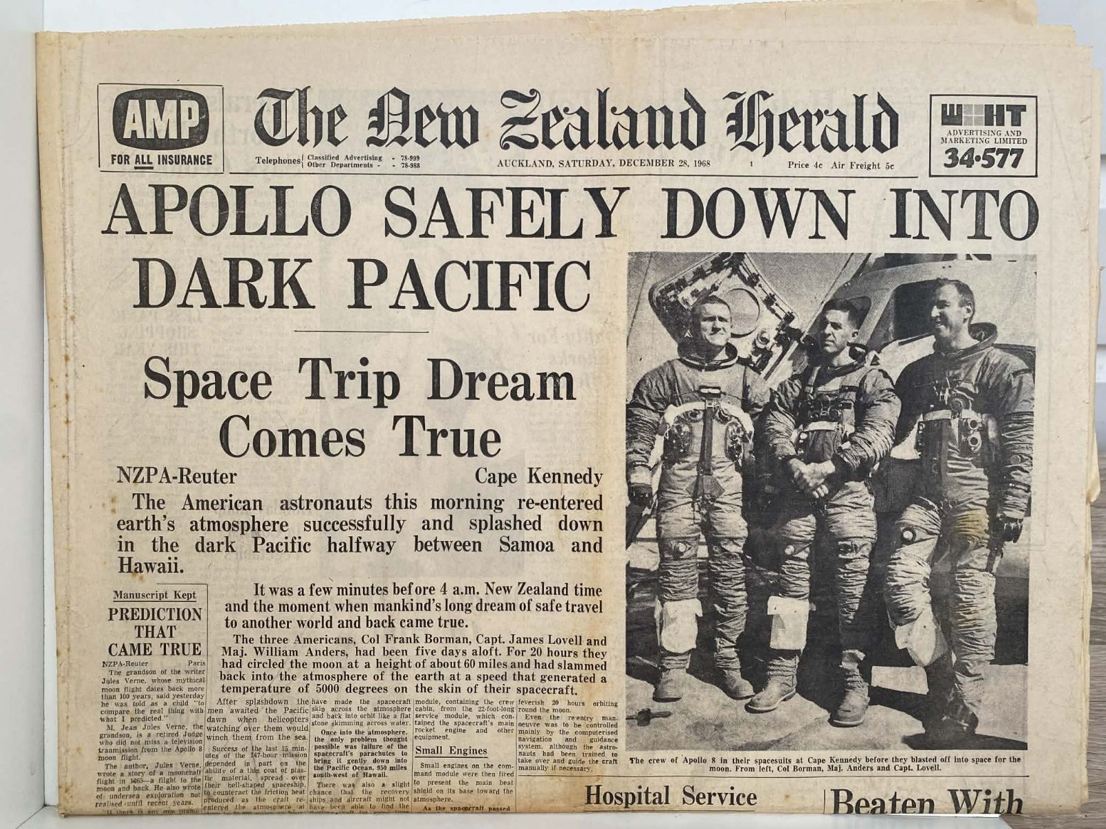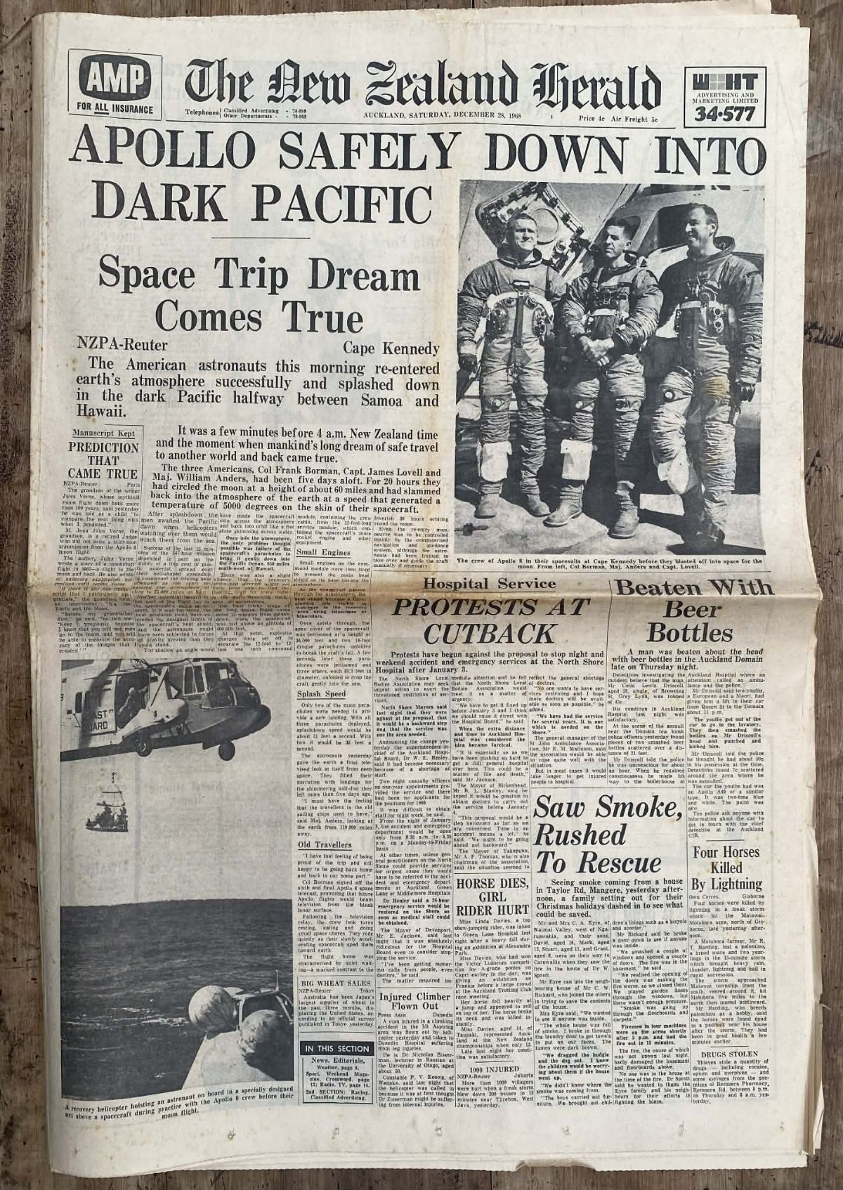 OLD NEWSPAPER: The New Zealand Herald - Saturday, 28 December 1968 - Moon Landing Special