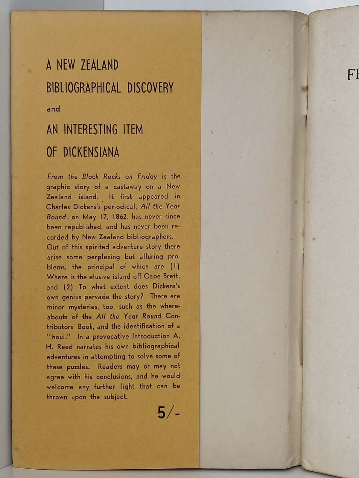 A graphic story of a castaway on a New Zealand island. It first appeared in Charles Dickens's periodical in 1862, and has never since been republished.