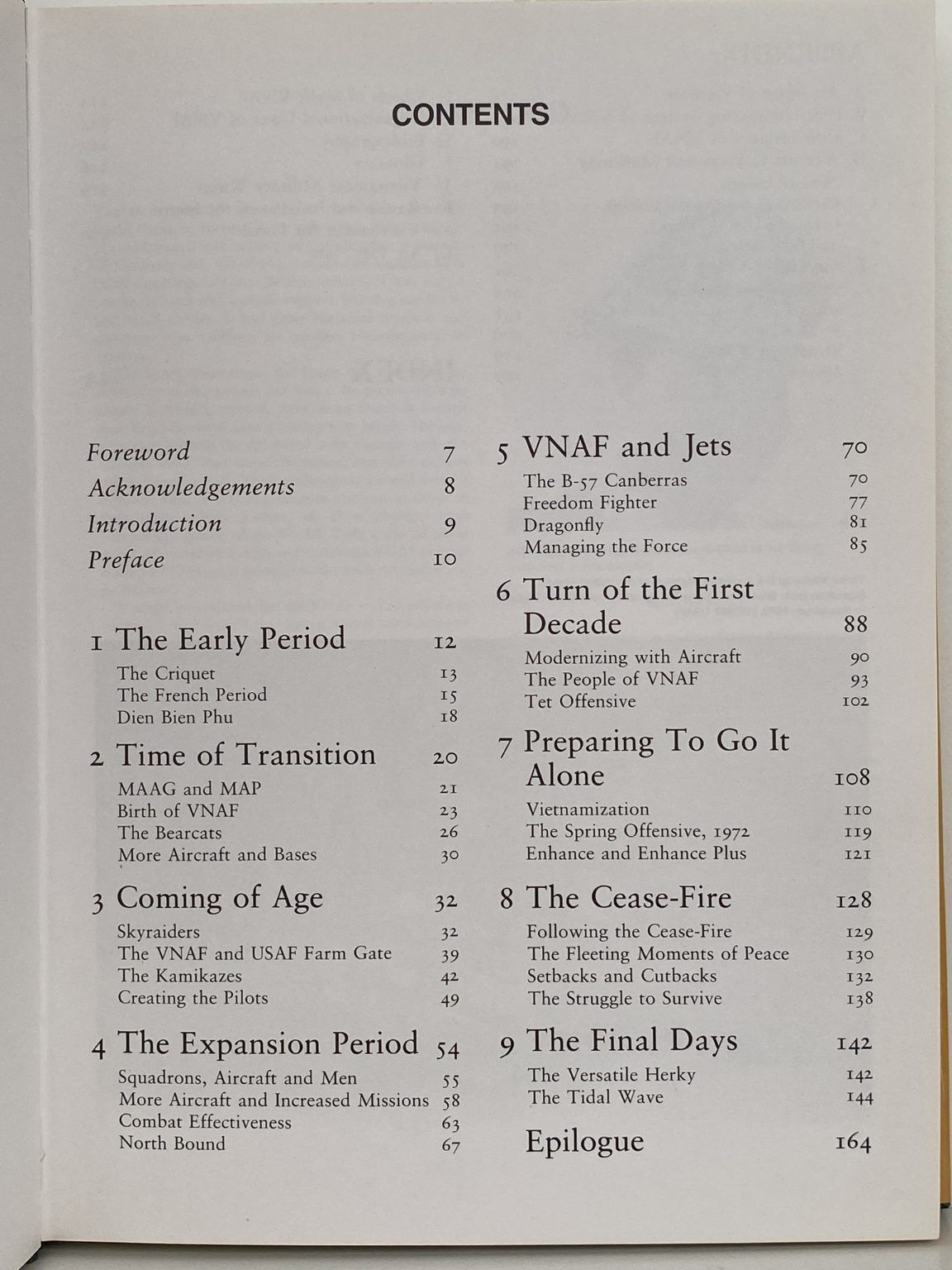 This is not a political history of the Vietnam War; rather it is the story of the transition of the VAF from an under-trained and ill-equipped French Air Force auxiliary unit to a size during its 20-year life span, so large that it was almost incapable of sustaining itself with sufficient numbers of trained personnel and support materials.
