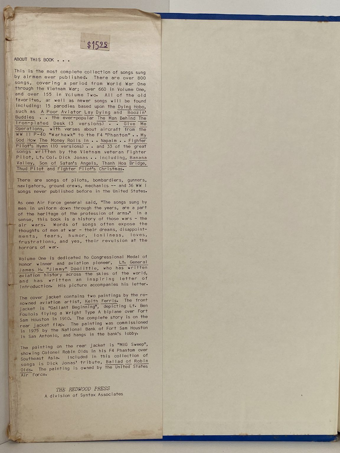 The collection of songs sung by airmen of over 800 songs, covering a period from World War One through the Vietnam War.