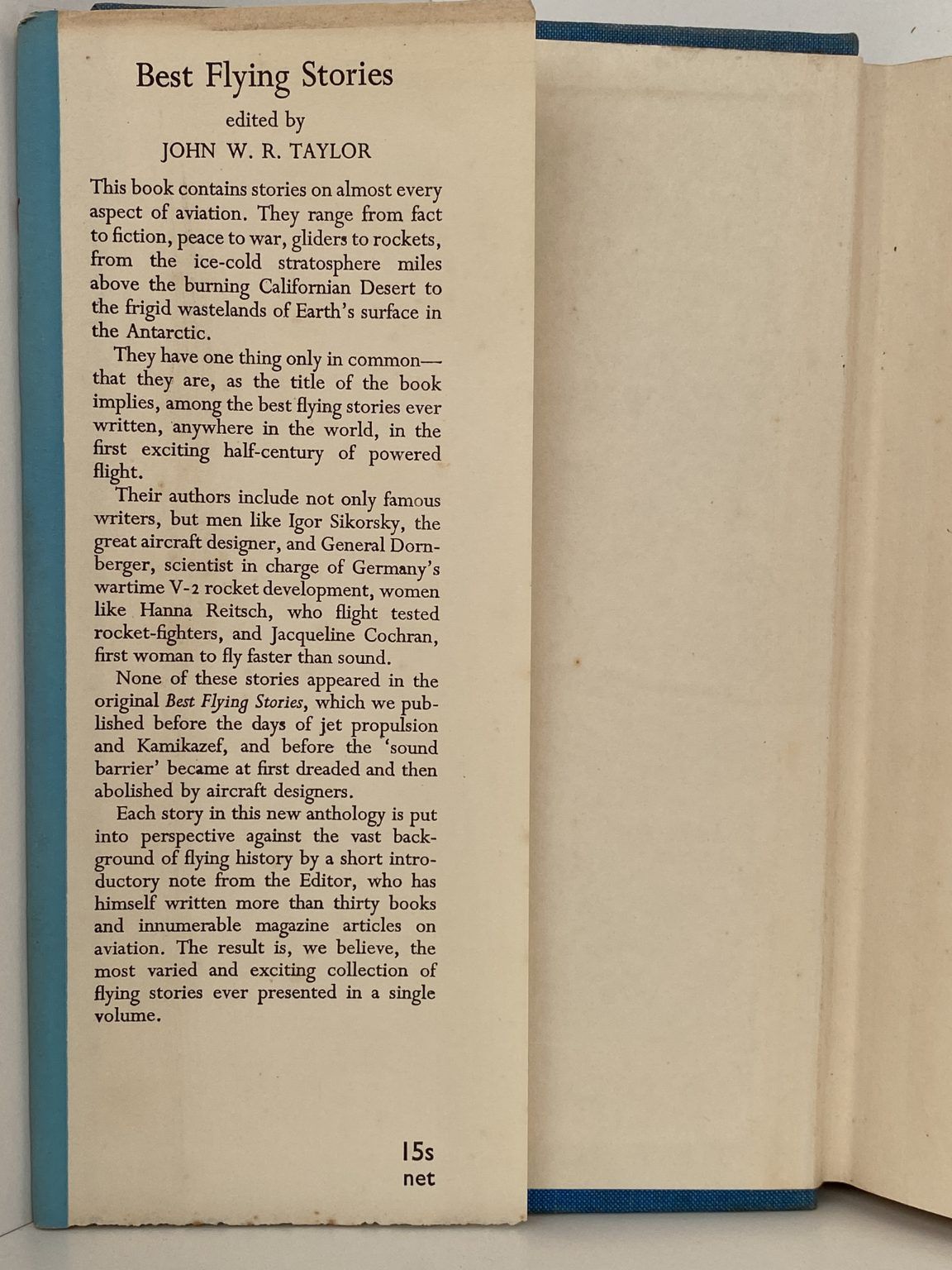 They range from fact to fiction, peace to war, gliders to rockets, from the ice-cold stratosphere miles above the burning Californian Desert to the frigid wastelands of Earth’s surface in the Antarctic. They have one thing only in common – that they are, as the title of the book implies, among the best flying stories every written, in the first half-century of powered flight.