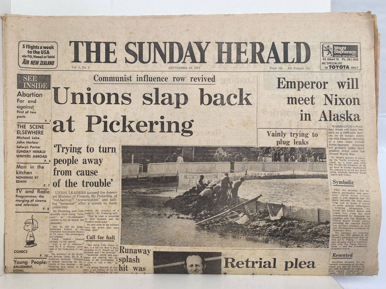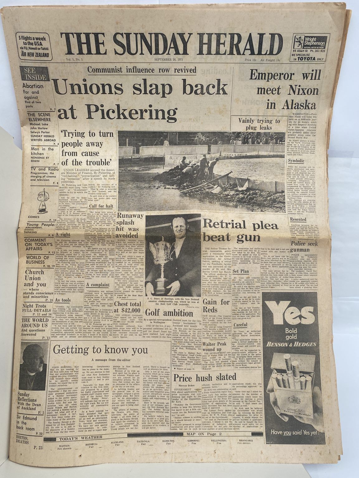 OLD NEWSPAPER: The Sunday Herald - Vol 1. No 1. 26 Sept 1971 very first edition