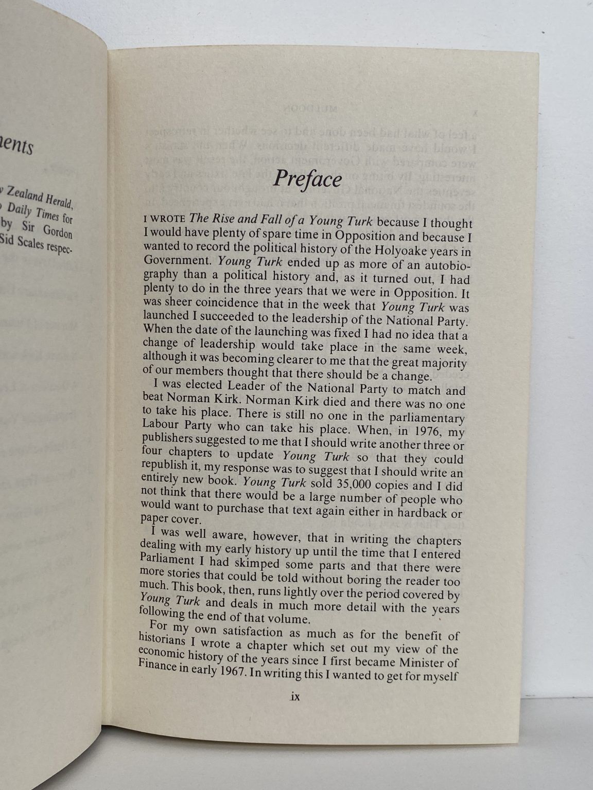 Rob Muldoon describes this book as: "the personal memoirs of a New Zealander - who loves his country and believes that its intimate political history should be recorded"