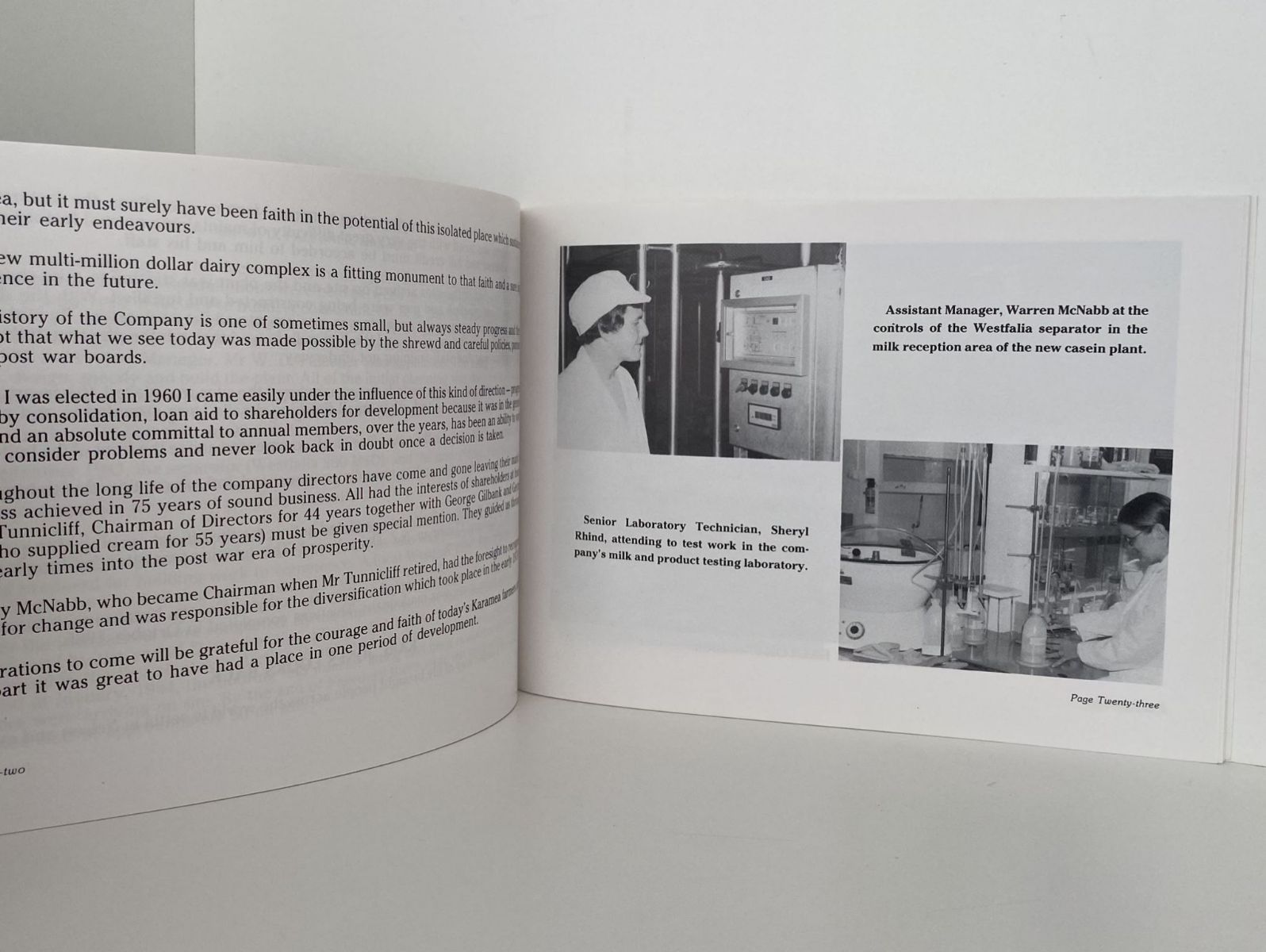 The Karamea Co-operative Dairy Company and the Buller Valley Co-operative Dairy Company merged in 1972. Thus this jubilee booklet covers both companies. From 1911 to 1951, the Karamea Co-operative Dairy Company was known as Karamea Co-operative Dairy Factory Company.
