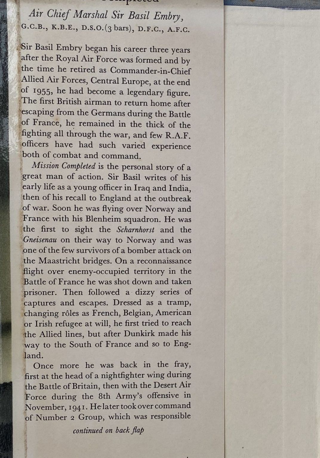 Biography of Air Chief Marshall Sir Basil Embry.