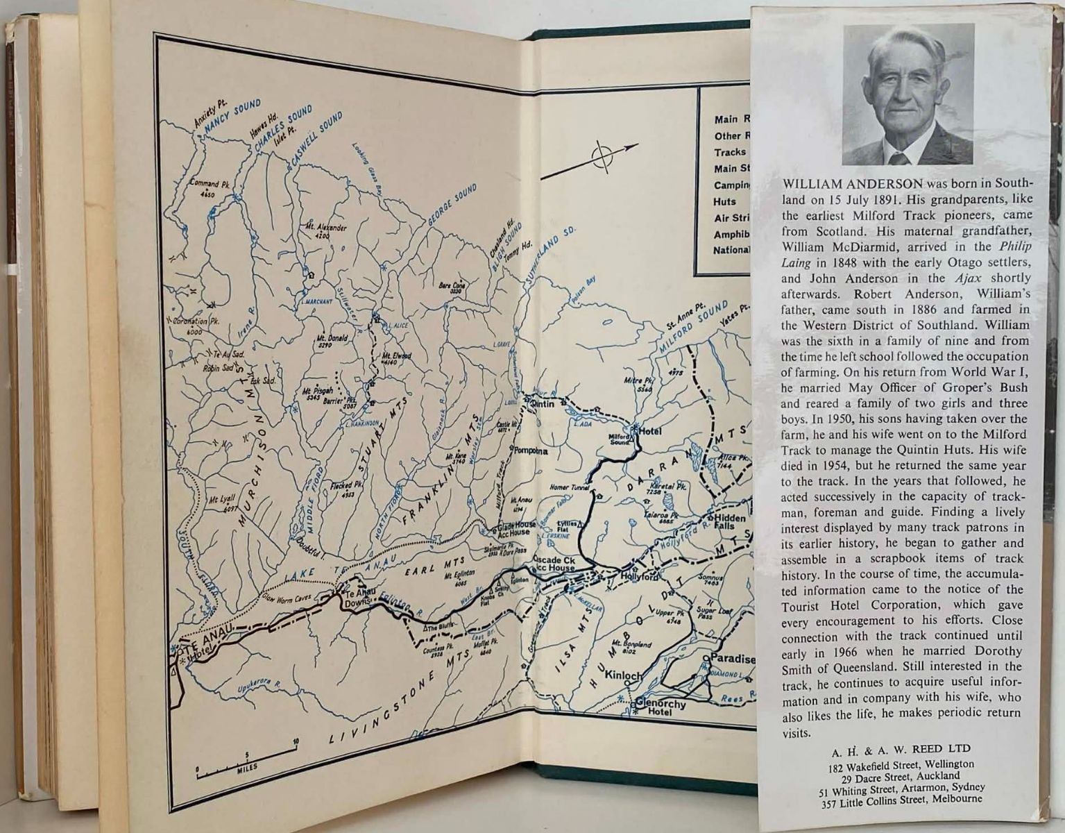 William Anderson did not set foot in Fiordland until 1950 when he handed over his Southland farm to his sons, and with the help of his wife May and got a job running the Quintin Huts on the Milford Track and pioneered new tracks from Quintin.