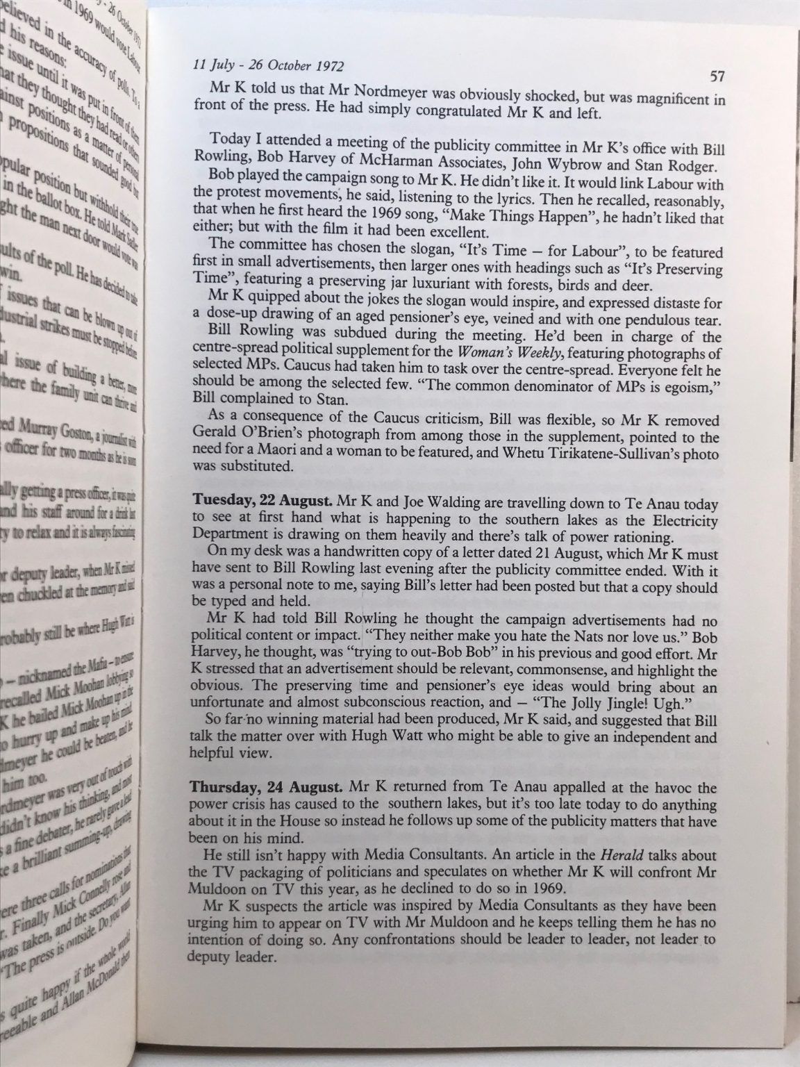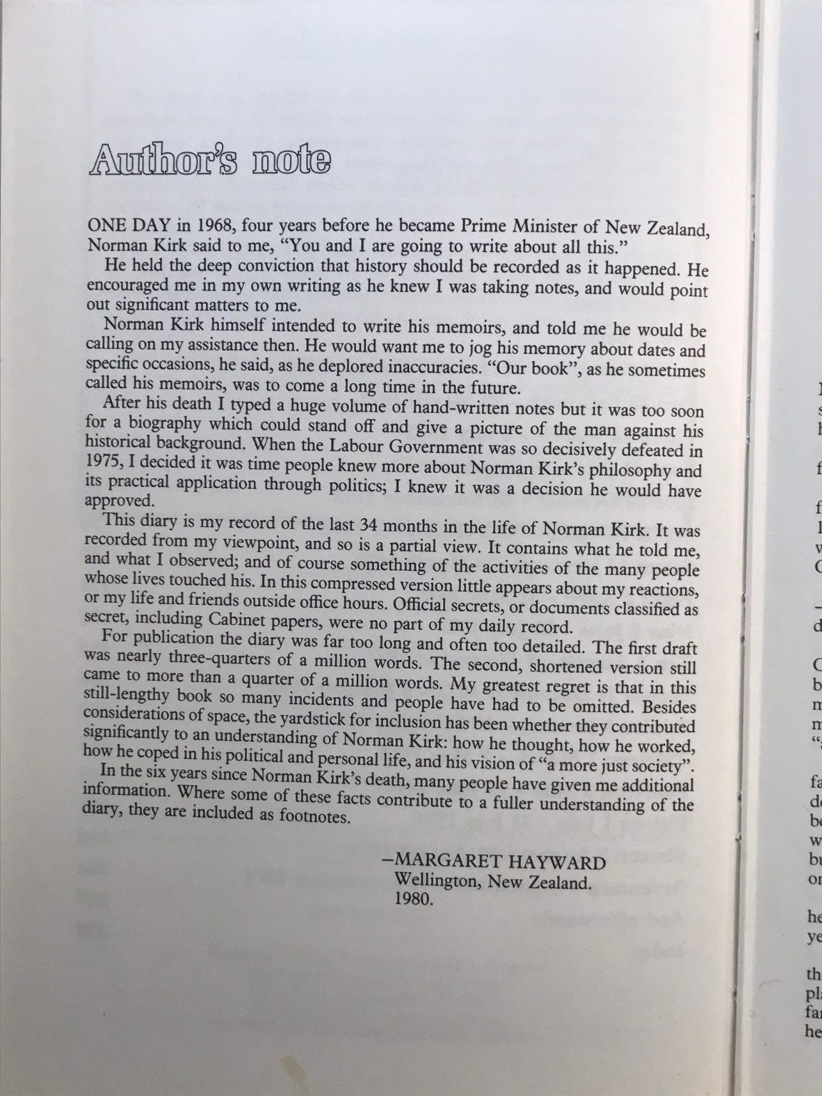 Long before he became Prime Minister of New Zealand in 1972, Norman Kirk said to his private secretary, Margaret Hayward, you and I are going to write about all this.