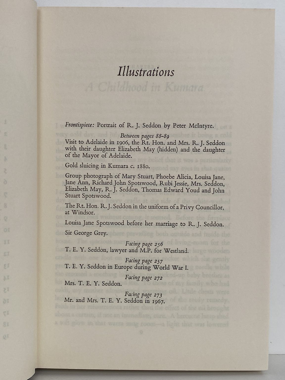 A tale of pleasant nostalgia and occasional sad memories. It is also the story and naturally an intimate one, of the last years of 'King Dick' Seddon, as seen through the eyes of his son and indirectly through the eyes of his large family.