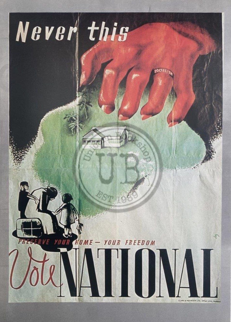 While the Labour Party in 1938 could display its confidence through its poster design, the newly formed National Party used vivid visual imagery to engender fear in the public mind of Labour's new social welfare policies.